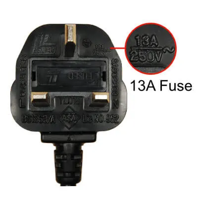 Somewhat confusingly, all rewirable type plugs are marked as 13A, but this is the current rating of the plug, not the fuse. In some cases, the manufacturer will put a sticker on the cover to indicate the correct fuse size, but this is not a legal requirement.